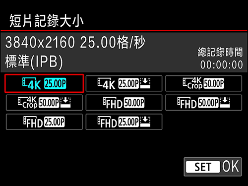 | 短片記錄格式 | 4K UHD:3840x2160 |