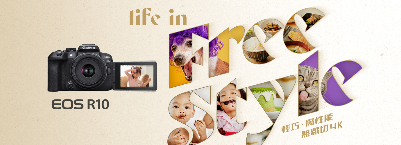 機身重量只有 429 克的輕巧 EOS R 系統 APS-C 相機 EOS R10 配備高速 2,420 萬像素 APS-C CMOS 影像感應器,結合高速 DIGIC X 數碼影像處理器,實現高速及高質素影像,支援每秒 23 張1(電子快門2) 或每秒 15 張3(機械快門) 高速連續拍攝。採用源自 EOS R3 的 EOS iTR AF X 先進自動對焦,提供出色的人物、動物4及車輛5主體辨識及追蹤。EOS R10 支援 6K 超取樣高質素無裁切 4K UHD 30P 短片及有裁切 4K UHD 60P 短片等。EOS R10 更加入「全景拍攝」模式及「深度合成」等功能,無論日常隨拍或旅遊都應付自如。