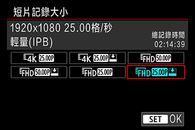 | 記錄大小及影片幀數 | 4K UHD (29.97 / 25.00 / 23.98fps) / IPB 全高清 (59.94 / 50.00fps/ 29.97 / 25.00 / 23.98fps) / IPB 全高清 (119.88 / 100.00fps) / IPB |