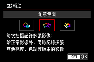 在創意包圍模式﹐每次按下快門時除了以用家的設定拍攝外,相機還會自動記錄3張不同亮度及色調的相片,方便用家從中揀選喜愛的相片。