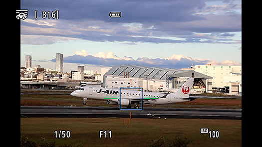 EOS R50 的搖攝模式(特殊場景) 加入全新「主體模糊導引」,以導引線的顏色及數目表示模糊量及方向,協助用家掌握搖攝速度以提升成功率。