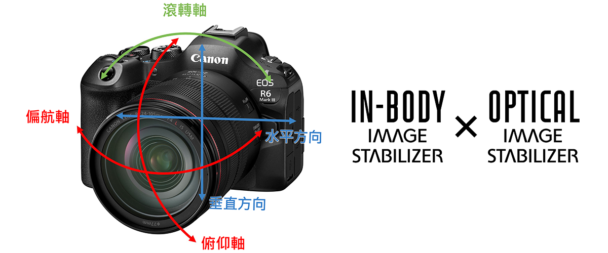 畫面中央 8.5級防震效果* 畫面周邊 7.5級防震效果* *根據CIPA 2024標準,俯仰/偏擺/滾轉方向。使用電子快門及 RF24-105mm F2.8 L IS USM Z (於105mm 焦距)。 |
