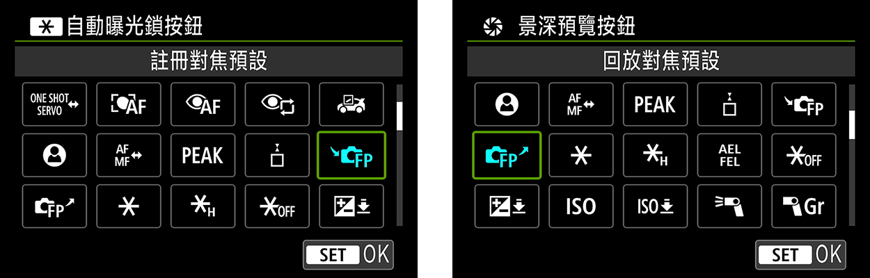 | 自訂拍攝模式 | 可以將相機現時設定註冊至 C1/C2/C3 拍攝模式中。