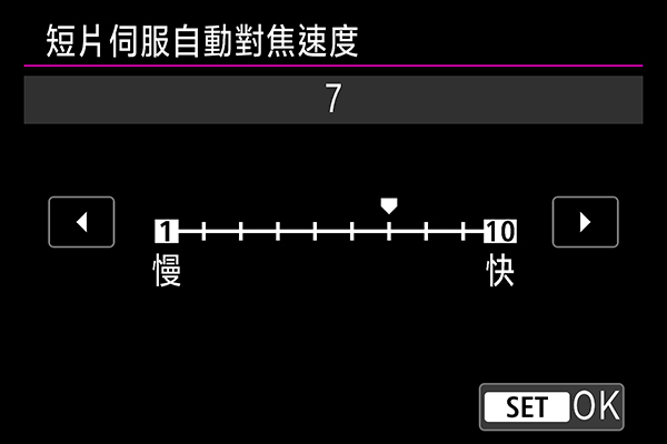短片伺服自動對焦速度可以在 1-10 的範圍內調整以適合拍攝風格。