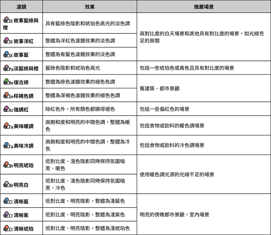 | 觀景器/螢幕色調 | 暖色調/標準/冷色調 1/冷色調 2。