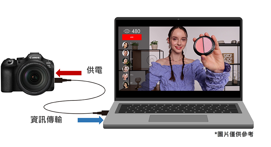 | 交流電源 | 使用 USB 電源轉接器 PD-E2 (另購) 及直流電連接器 DR-E6P (另購) |