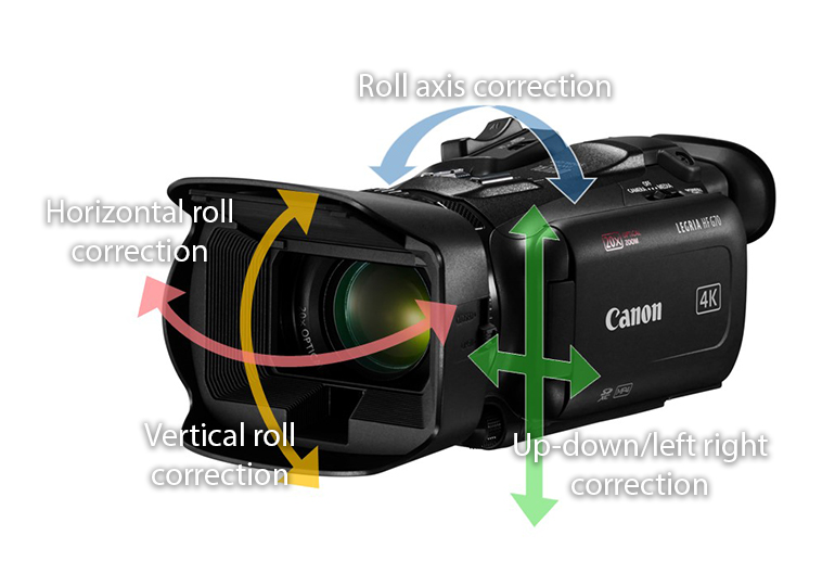 針對5大移動作出修正,包括沿横、縱、側軸的旋轉傾斜,以及上下或左右的平移偏移,更能有效修正影像變形,即使行走中手持攝錄機拍攝,亦能保持高水準的攝錄效果。