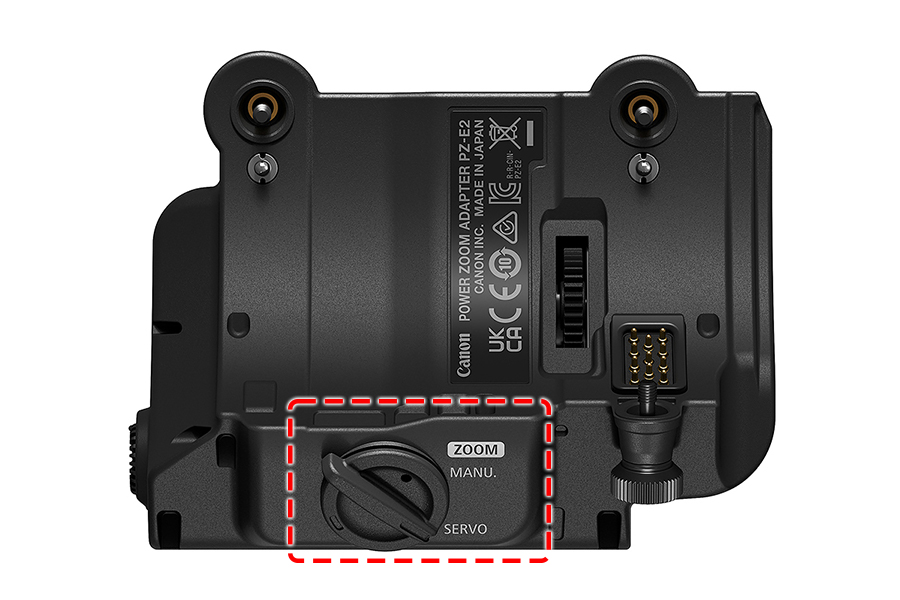 除了伺服變焦 [SERVO]外,電動變焦轉接器 PZ-E2 仍保留對手動變焦的支援。只要將變焦模式開關式設定為手動變焦 [MANU.],即可直接轉動鏡頭的變焦環進行變焦。