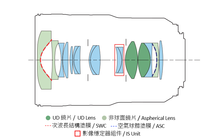 鏡頭亦加入了「ASC 空氣球體塗膜」以抑制由接近垂直進入鏡頭的光線或背光拍攝時產生的鬼影與眩光。