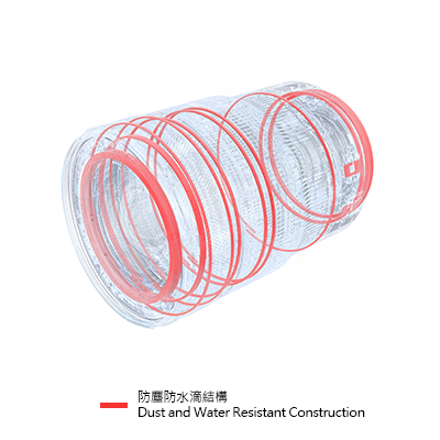鏡頭的最前端及最後端鏡面均加入氟塗膜以減少微塵、油份及水份依附於鏡面及可輕易以乾布清潔。