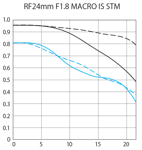 RF24mm F1.8 MACRO IS STM採用全新研發9組11片光學設計,加入1片UD鏡片以修正色差;亦在鏡頭接近焦平面的方向加入1片PMo非球面鏡片以修正像場彎曲1。鏡頭充分利用RF接環的優勢並於最接近焦平面的位置放置一枚大口徑鏡片,令鏡頭於光圈全開的情況下仍能保持畫面中央至邊緣的高銳利度,同時減少整個光學系統的體積。