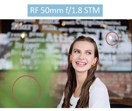 RF50mm F1.8 STM 光圈比一般套裝鏡頭的光圈大2-3級,更容易營造淺景深效果。拍攝時可同時製造前景和背景模糊,以使人像或主體更立體和突出。f/1.8光圈亦容許使用更快的快門拍攝以減低主體動作模糊、相機震動及可以使用較低ISO拍攝等。