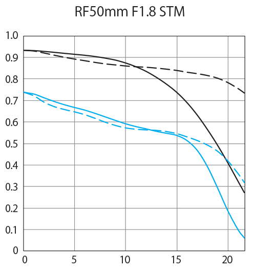 RF50mm F1.8 STM 採用的高斯結構(Gauss Type)光學設計, 針對RF接環的大口徑及短後焦距離作出優化,在接近焦平面使用一片大口徑鏡片,讓整個光學設計在更輕巧同時仍保持高影像質素。