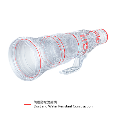 RF600mm F4 L IS USM 應用了ASC 空氣球體塗膜結構,大幅減少垂直和不同入射角度的反射光線,有效抑制鬼影和眩光。