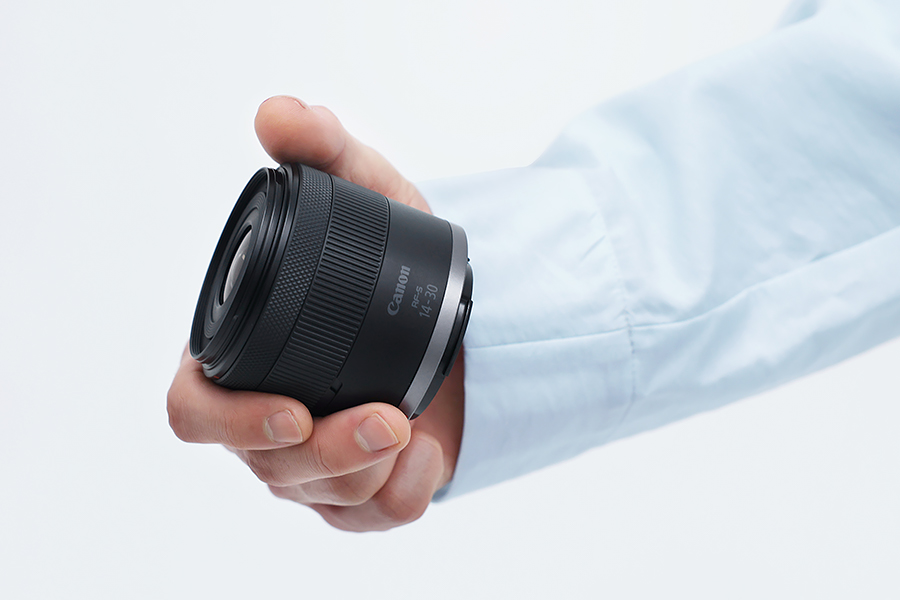 RF-S14-30mm F4-6.3 IS STM PZ 使用前鏡組固定的內變焦設計,長度為約 62 毫米,重量只有約 181 克。固定長度設計讓鏡頭在變焦時不會伸出,可以控制變焦時重心的變化。即使在使用穩定器 (gimbal) 和其他平衡調整至關重要的特殊設備時,也能提供舒適性和穩定性。