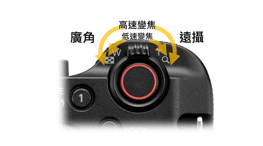 根據變焦環或相機的變焦桿的轉動角度,鏡頭提供兩級的變焦速度。較小的轉動角度會提供較慢的變焦;較大的轉動角度讓鏡頭高速變焦。