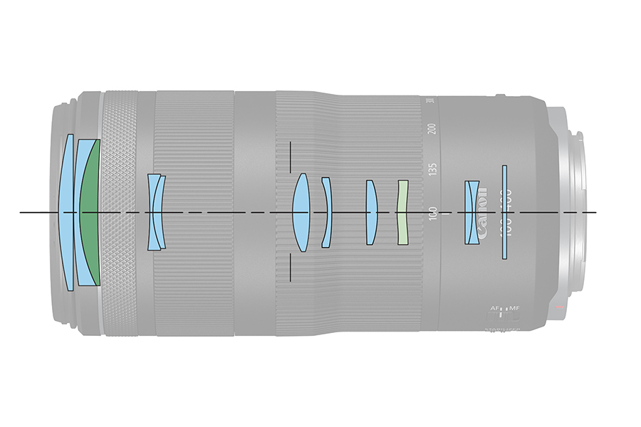 受惠於RF接環的優勢,鏡頭全新的9組12片光學設計成功比傳統遠攝變焦鏡頭大幅減少鏡片數目,達致更輕量、更緊湊的鏡頭設計。