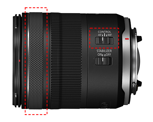 鏡頭兼容電子全時手動對焦6,可以在使用單次自動對焦 (ONE SHOT) 或伺服自動對焦 (SERVO AF) 時隨時以對焦環進行手動對焦。