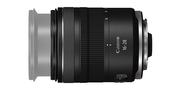 RF16-28mm F2.8 IS STM 的設計概念與 RF28-70mm F2.8 IS STM 相同,同樣採用了可伸縮的鏡頭結構及利用相機的數碼變形校正,大幅縮小了鏡頭尺寸及減輕重量。雖然是配備光學影像穩定器的恆定 f/2.8 大光圈的超廣角變焦鏡頭,鏡頭重量只有約 445 克,收起時長度亦只有約 91.0 毫米,尺寸及重量幾乎與 RF28-70mm F2.8 IS STM 相同,帶來極佳的機動性。