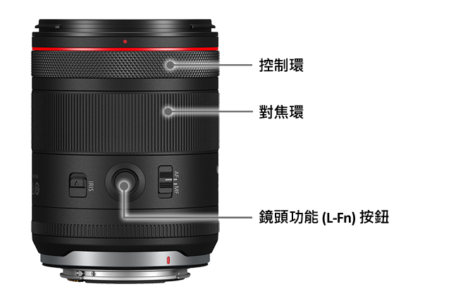 1 拍攝相片時,光圈環只適用於 EOS R5 Mark II 及之後推出的 EOS 相機。拍攝短片時操作光圈環,自動對焦可能難以對焦主體。