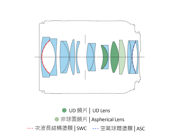 鏡頭亦加入了比傳統真空氣相沉積塗膜具備更優異防反光效果的ASC空氣球體塗膜,減少由反光引致的眩光及鬼影。