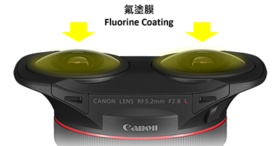 由於RF5.2mm F2.8 L DUAL FISHEYE 焦距較短﹐在前、後鏡片上的灰塵亦可能會被拍下﹐因此前鏡片特別加入氟塗膜令清潔更容易。