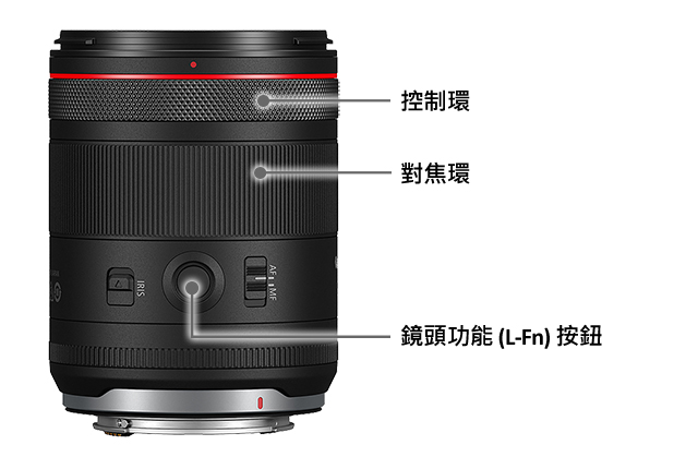 1 拍攝相片時,光圈環只適用於 EOS R5 Mark II 及之後推出的 EOS 相機。拍攝短片時操作光圈環,自動對焦可能難以對焦主體。