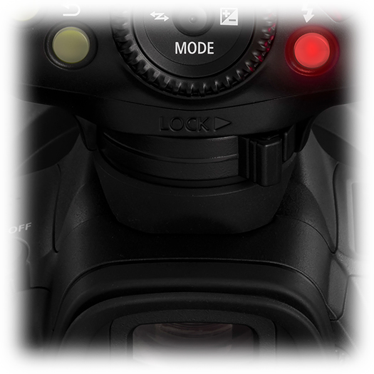 插腳的鎖定結構加入了橡膠防塵防水滴轉接器。 當鎖定插腳時,轉接器會下降並壓向相機的熱靴,提供更佳的防塵防水滴效能。