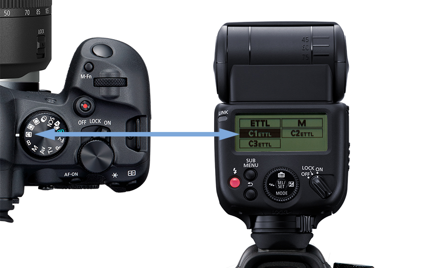 Speedlite EL-10 加入了自訂閃燈模式 C1/C2/C3,就像相機一樣,用家可以將閃光燈的設定 (閃燈模式、同步設定、無線電傳送無線閃光設定等) 註冊至自訂閃燈模式 C1/C2/C3。用家除了可以選擇自動更新設定外,更可以與相機的自訂拍攝模式連結,當選擇相機的 C1/C2/C3 拍攝模式時,閃光燈亦會切換至對應的自訂閃燈模式 C1/C2/C38。