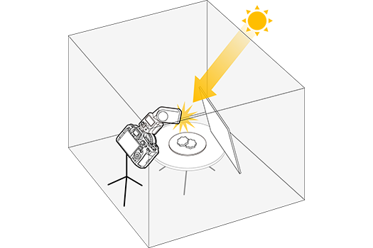 Speedlite EL-10 兼容「反射轉接器 SBA-E2」(另購),能進一步擴大反射閃光範圍,減少主體前方的影子,讓反射閃光拍攝效果更自然。