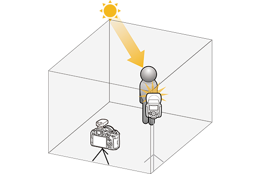 當 Speedlite EL-10 作為「傳送單元」或 「接收單元」使用 E-TTL 進行拍攝時,可以自動設定閃光強度以與周圍環境達到最佳平衡,使多閃光燈拍攝變得更加容易。