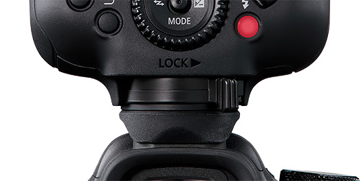 插腳的鎖定結構加入了橡膠防塵防水滴轉接器。 當鎖定插腳時,轉接器會下降並壓向相機的多功能靴,提供更佳的防塵防水滴效能。