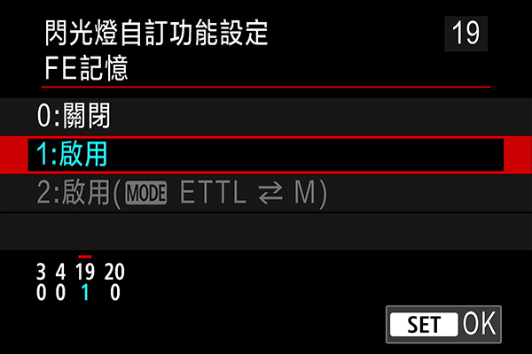 以相機設定閃光燈自訂功能 C.Fn-19: FE 記憶