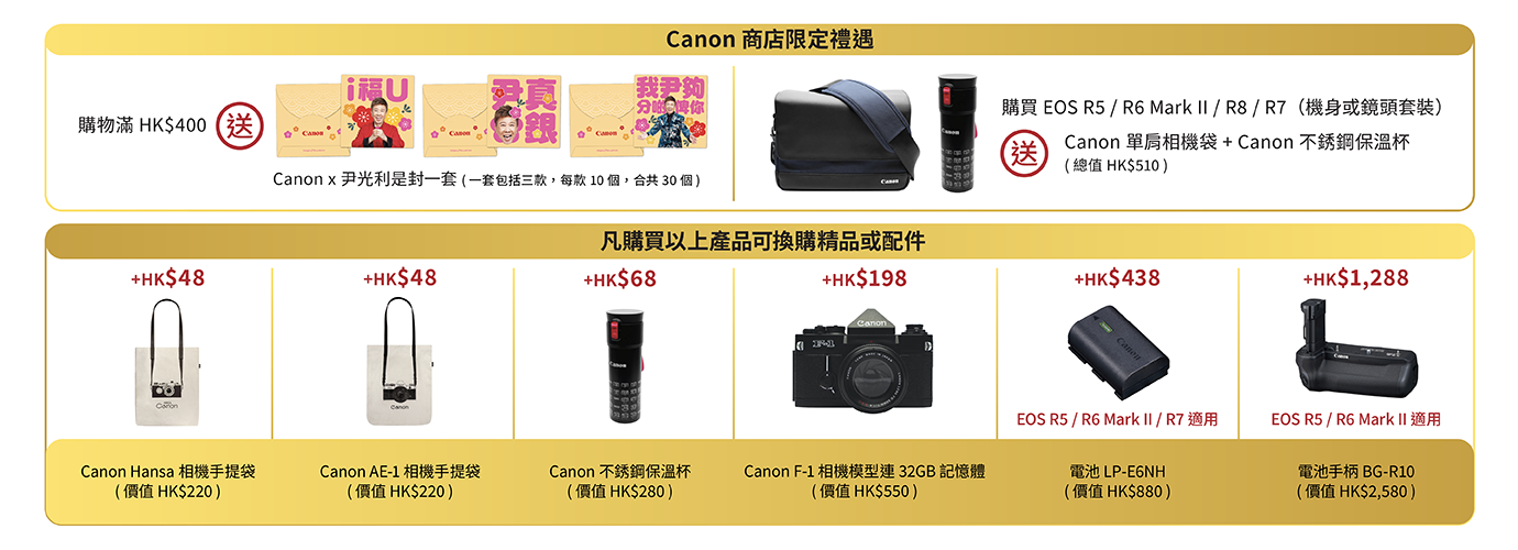 *優惠受條款及細則約束。詳情請瀏覽 https://store.hk.canon/chinese/cny_tc_2024