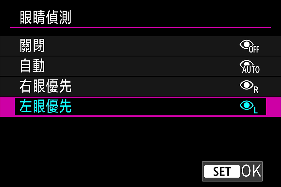 眼睛偵測自動對焦加入右眼優先或左眼優先對焦,在使用大光圈鏡頭以淺景深拍攝人像時便非常方便。