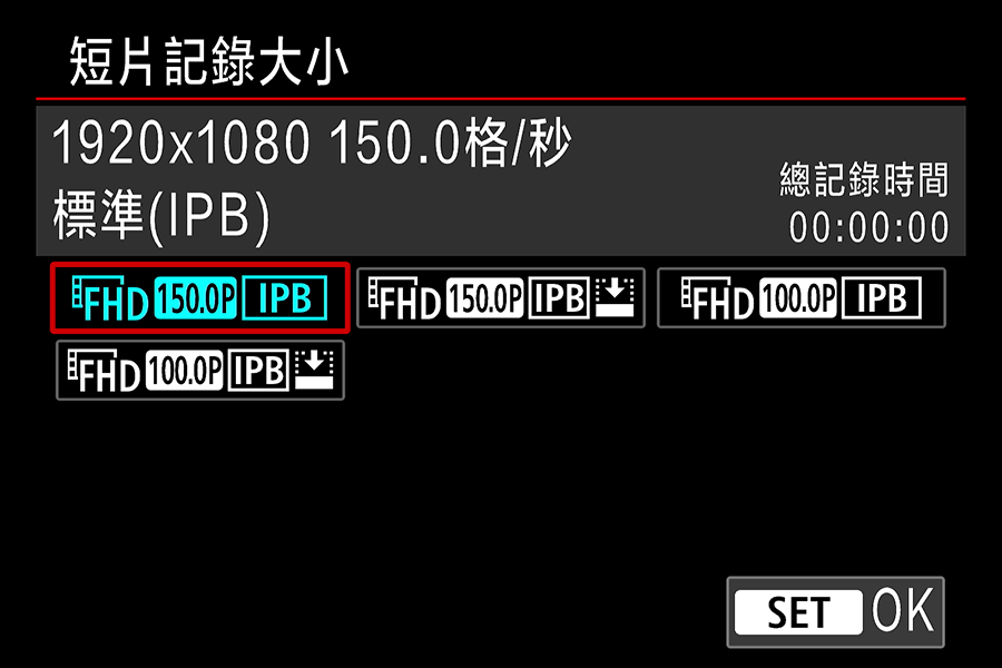 全高清 (59.94 / 50.00fps / 29.97 / 25.00 / 23.98fps) / IPB (輕量)