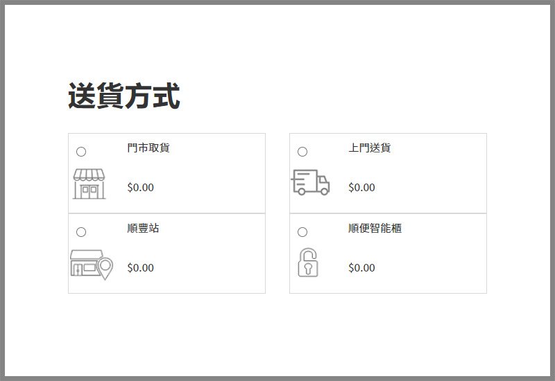 - 如果您選擇"順豐站"自取, 請選擇合適的順豐自行取貨地址,以便您能於到貨後三天内到店內提取您的商品。 取貨時,必須出示身份證和順豐速運發出之確認短訊,並經授權服務站店員核實後,方可取件。